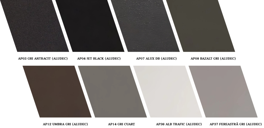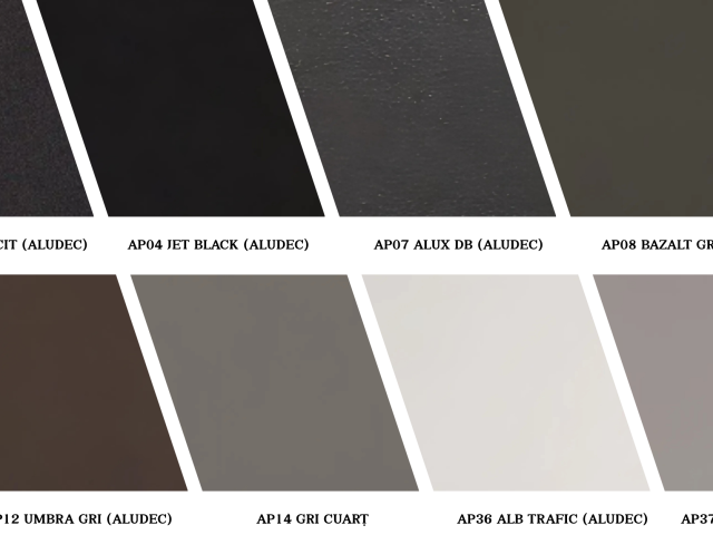 ALUDEC – hochwertige Dekorstrukturen, die sich durch eine einzigartige Oberfläche mit feiner, matter Sandkörnung auszeichnen und die Optik von pulverbeschichtetem Aluminium bieten.