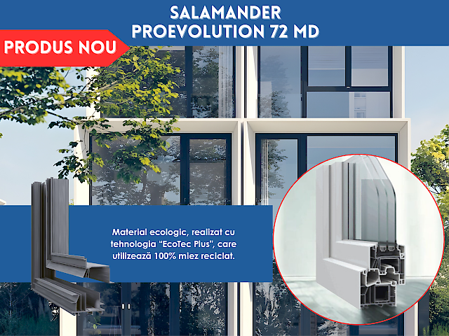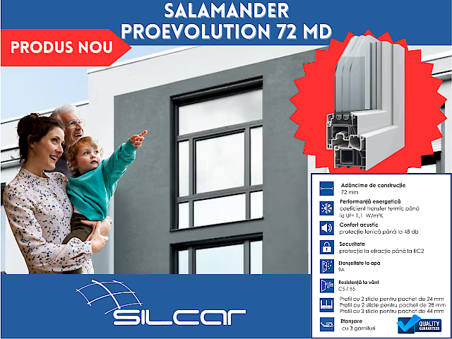 Disponibil intr-o gama variata de culori si finisaje decorative pentru toc si cercevea, sistemul se integreaza cu usurinta in diferite stiluri arhitecturale, de la clasic la modern. Salamander proEvolution 72 MD reprezinta o alegere practica si fiabila pentru proiecte care necesita un raport corect intre performanta, design si cost.)